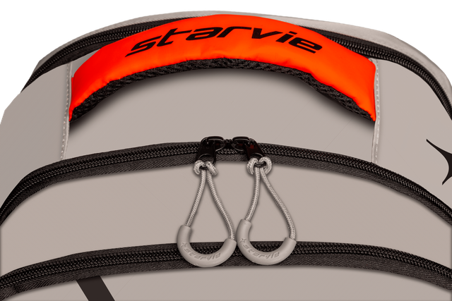 Der neue Pro Astrum Rucksack in seinem neuen Design in Grau und Orange mit großer Speicherkapazität, ist der perfekte Begleiter für den Weg zum Padelspiel nach der Arbeit. Er hat eine geschützte Tasche, um elektronische Geräte bequem zu tragen und eine zentrale Tasche, um einen Schläger, andere Padel-Ausrüstung und Zubehör zu speichern.